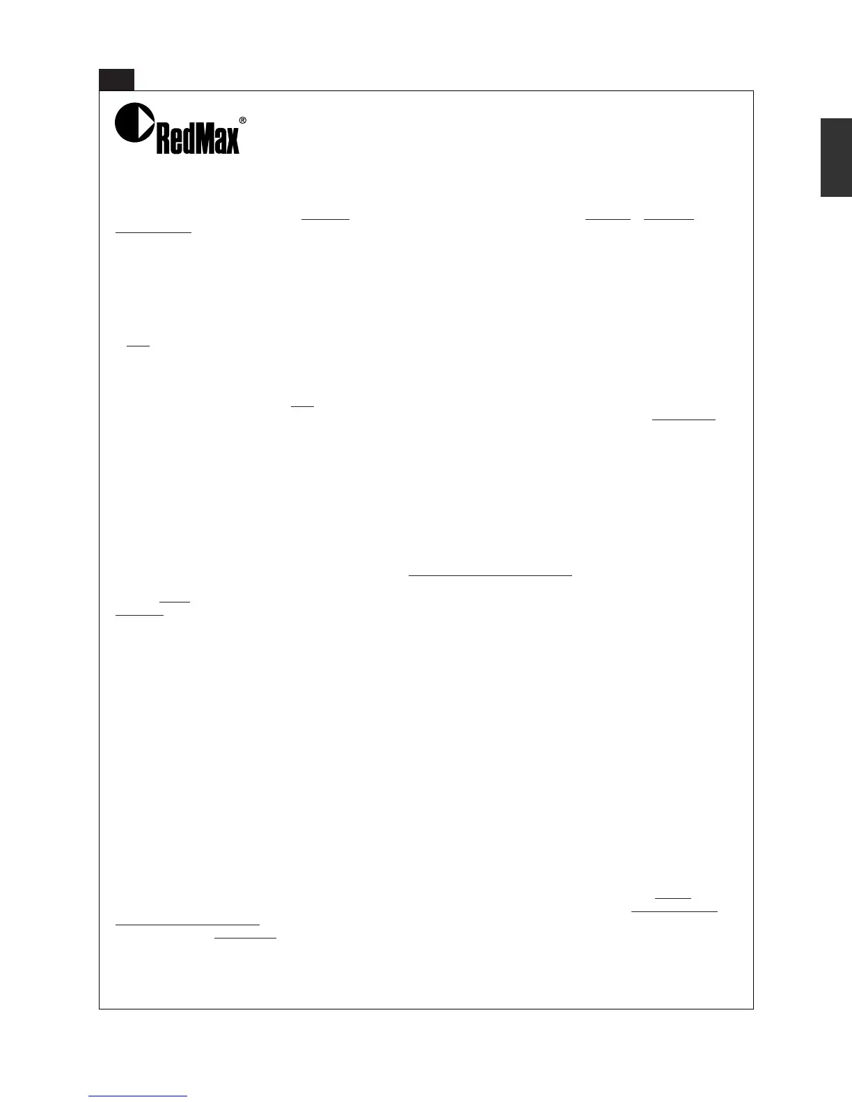 otherwise applicable to this product. RedMax and its affiliated companies shall not be liable for any special incidental or consequential damage,