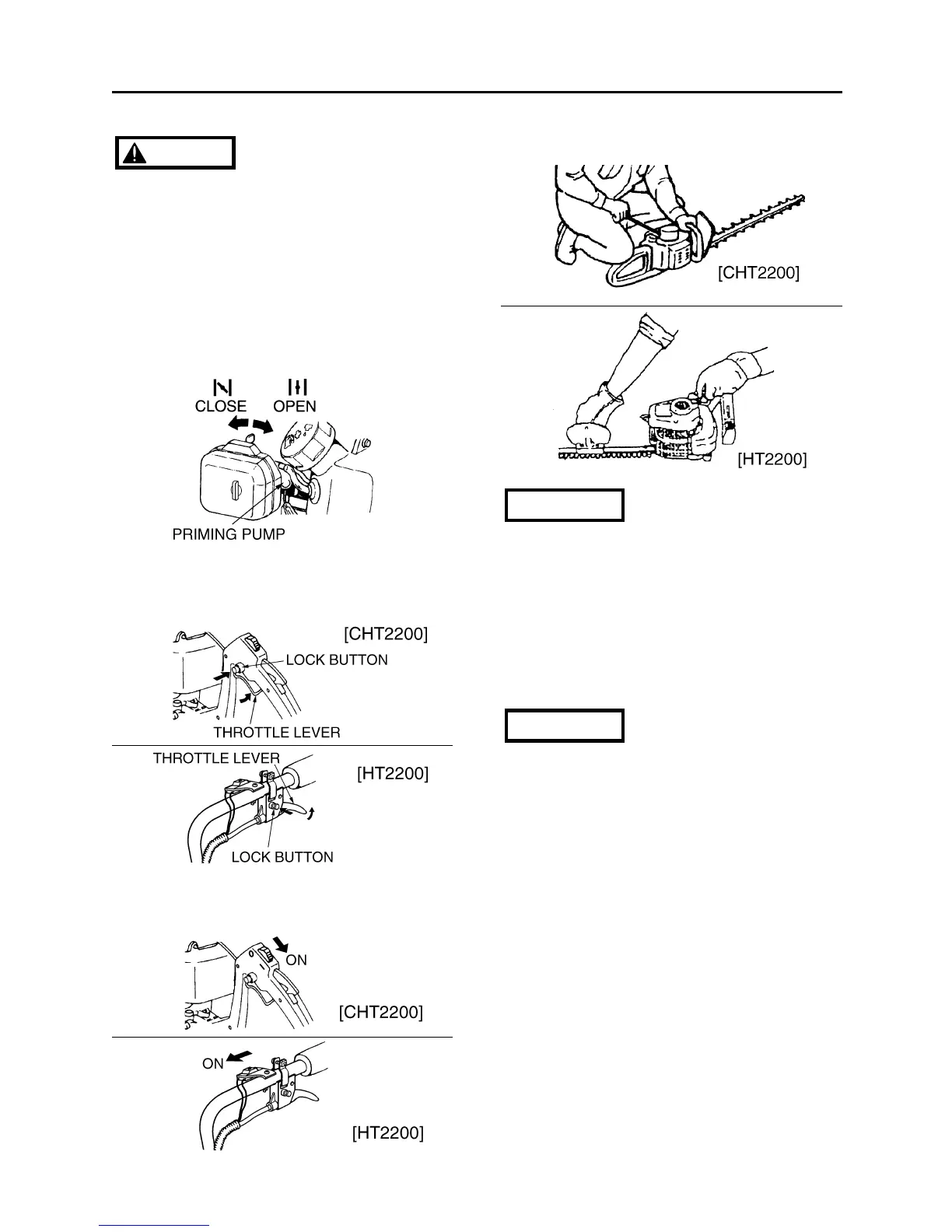2. Pull the throttle lever and push the lock