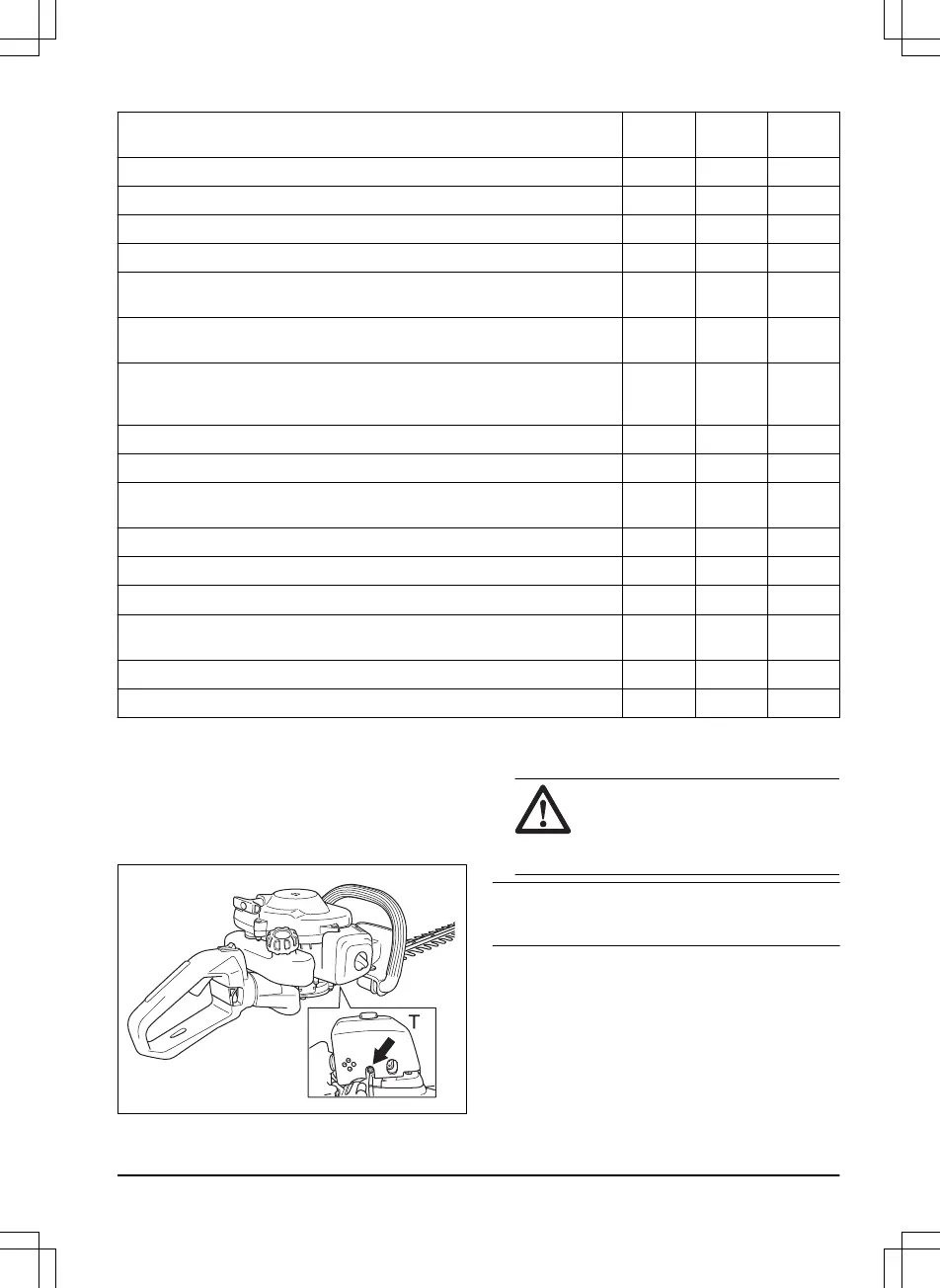 Examine the engine, the fuel tank and the fuel hose for leaks. X