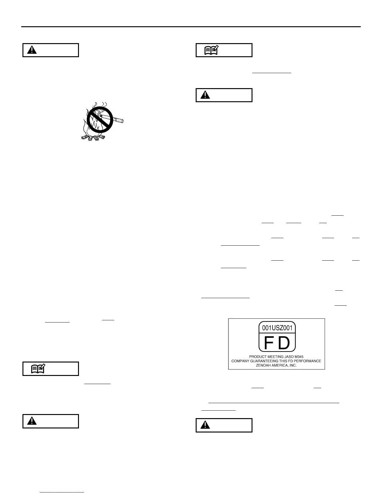 • Gasoline is very flammable. Avoid smoking or bringing any