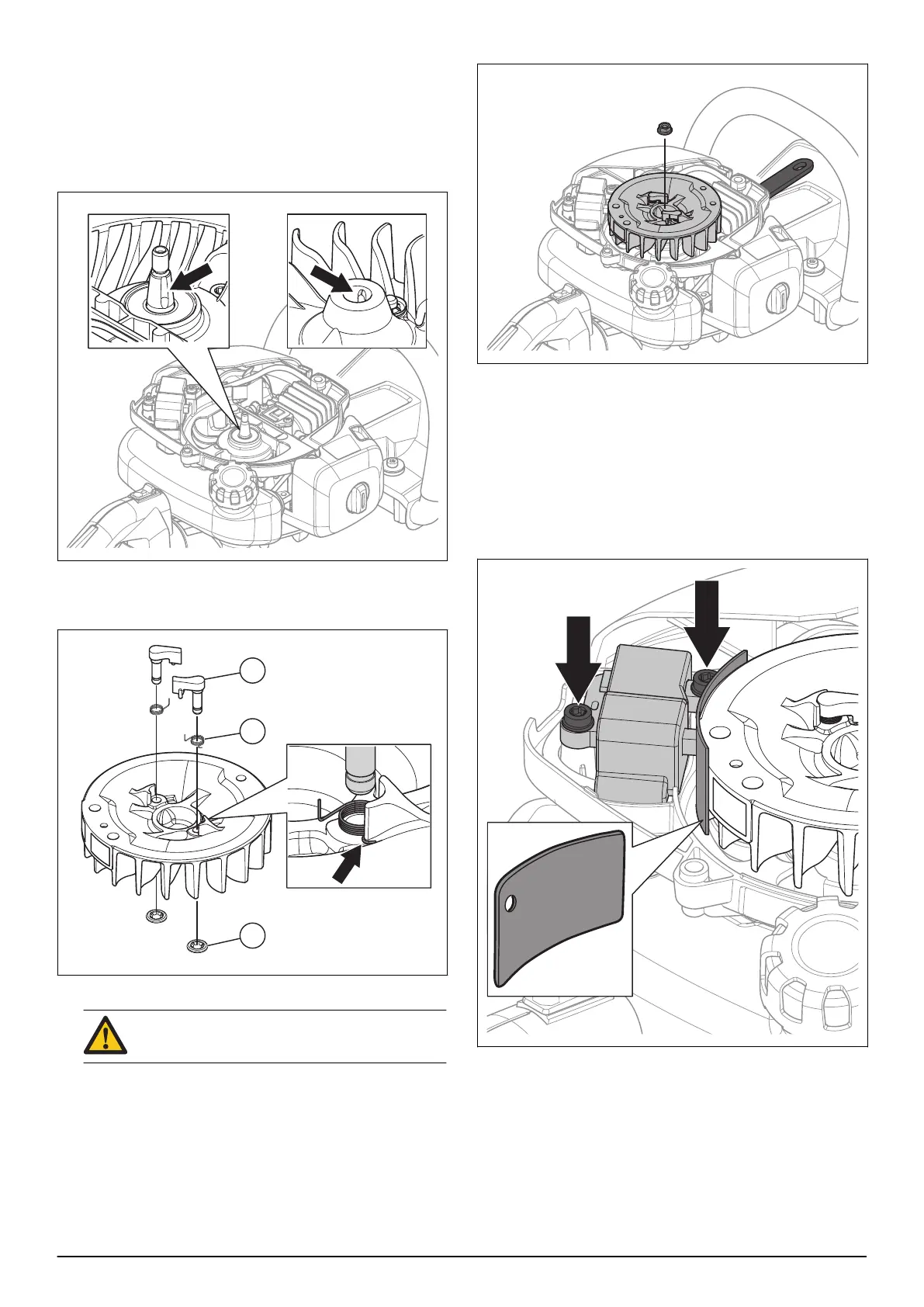 2. Install the 2 recoil springs (A) and the 2 starter pawls