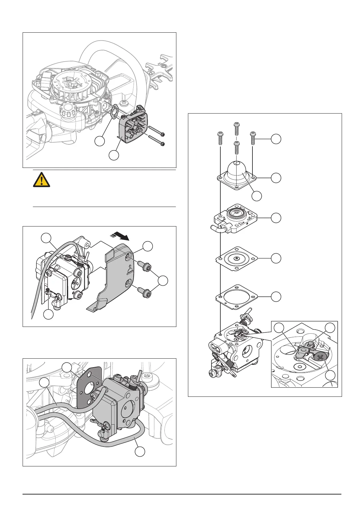 CAUTION: The carburetor can fall off the