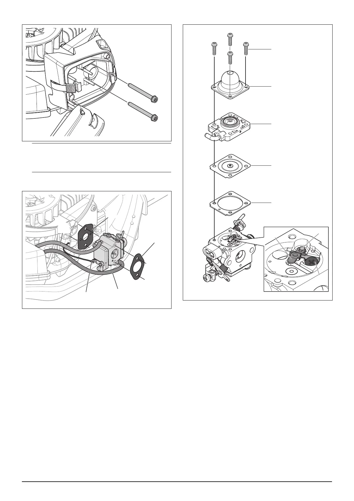 5. Remove the fuel hoses (E) and (D) and the throttle
