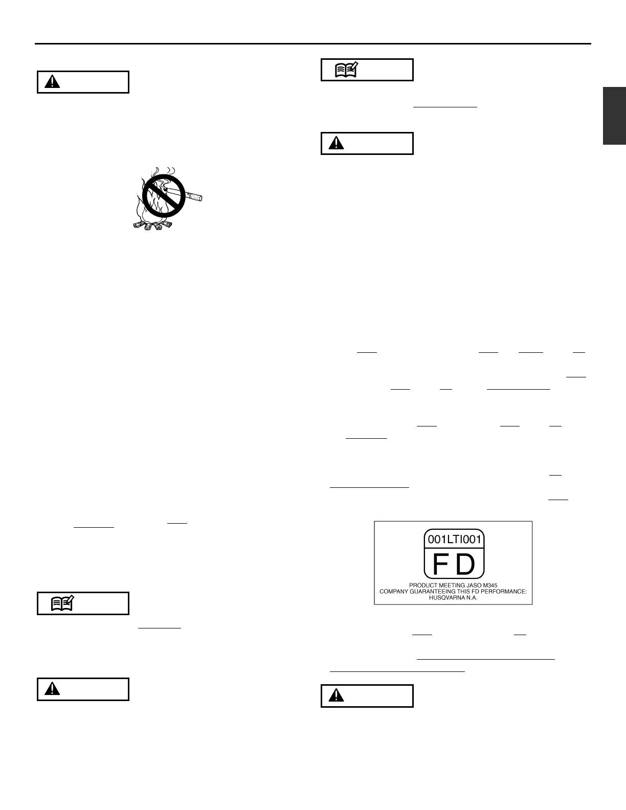 • Gasoline is very flammable. Avoid smoking or bringing any