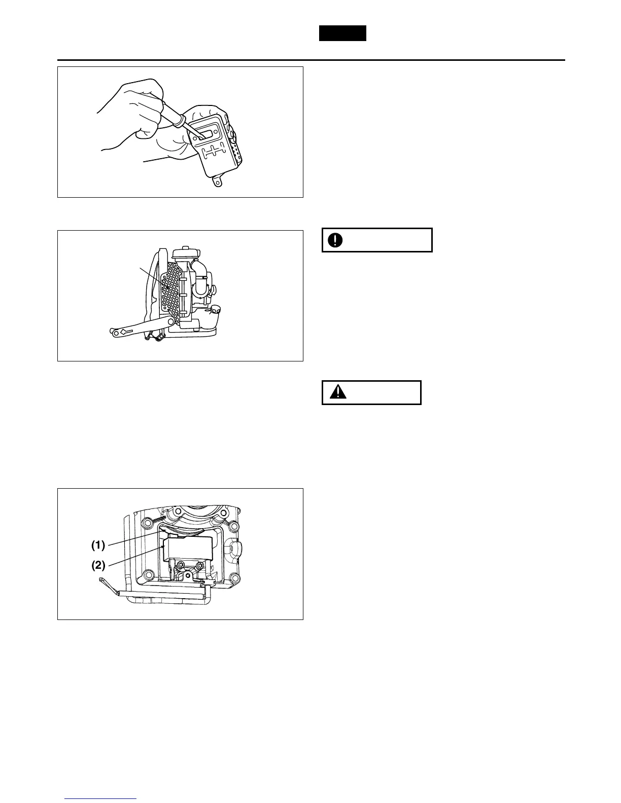 1. Remove the muffler, insert a screwdriver into the
