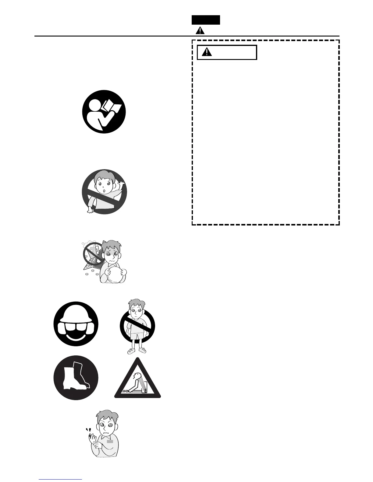 being drawn into air intake and rotating parts, do not