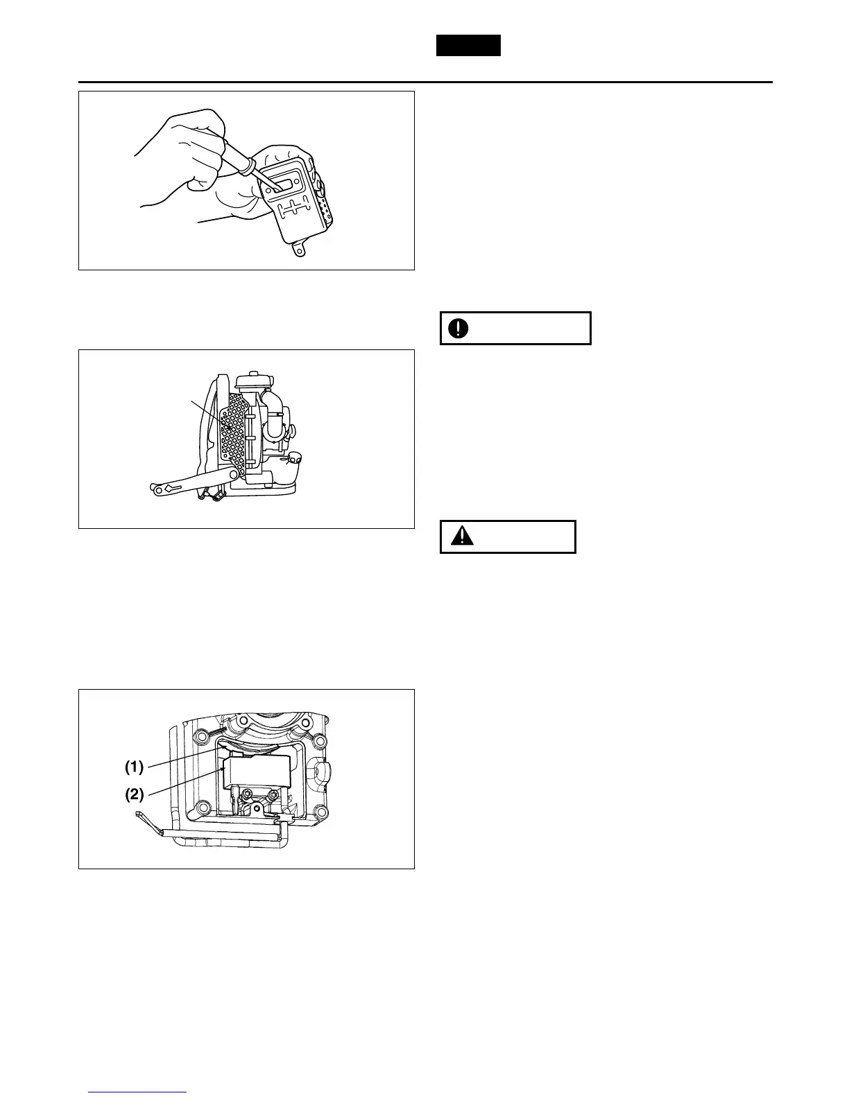 1. Remove the muffler, insert a screwdriver into the
