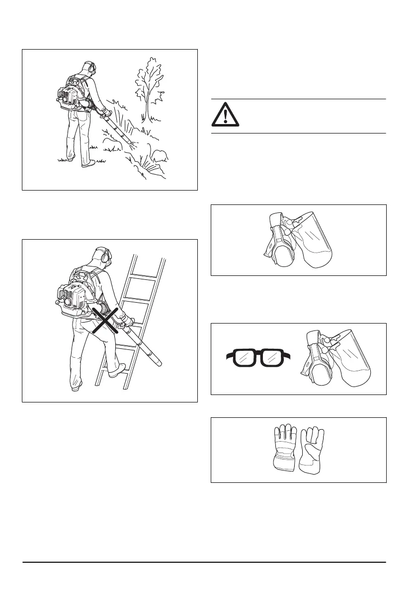 • Never operate the product from ladders or high
