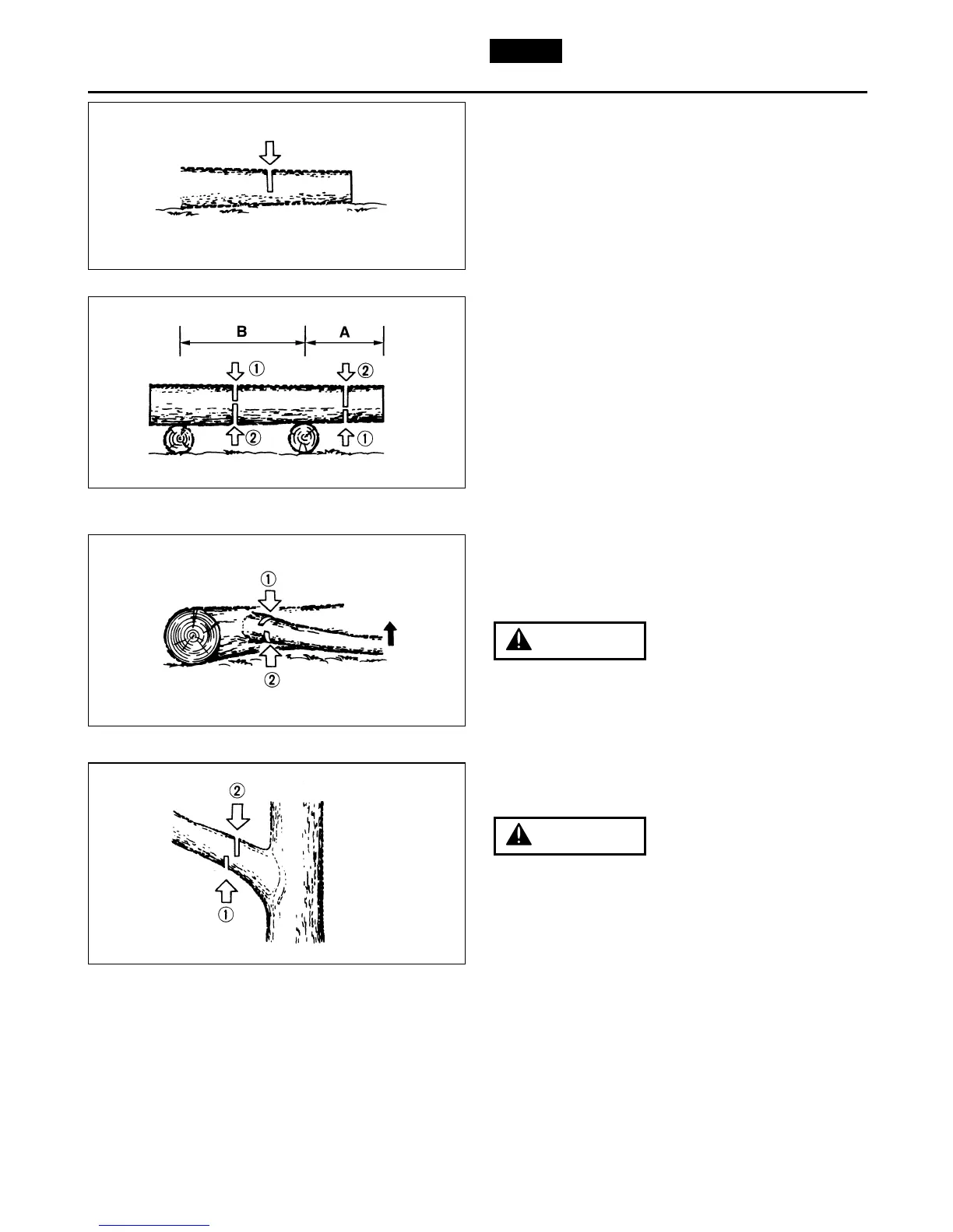 by sawing down from the top. In area B, saw down