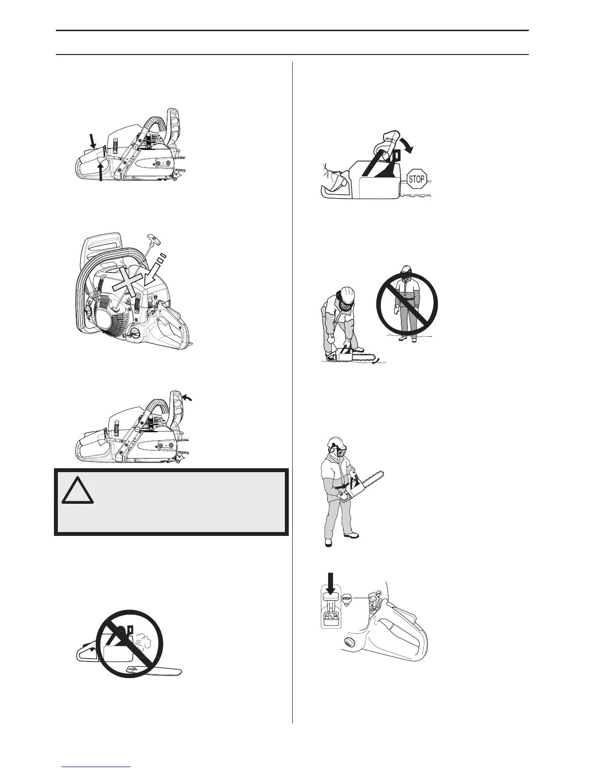 • Ne jamais démarrer une tronçonneuse tant que le