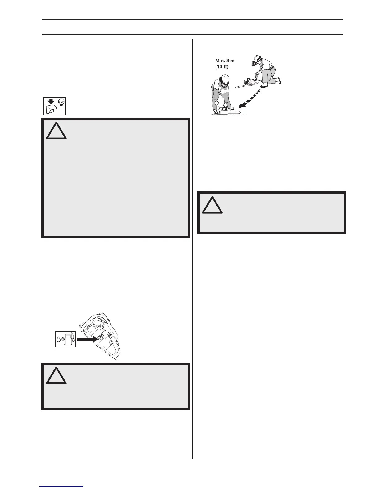• Almacene la motosierra y el combustible de forma