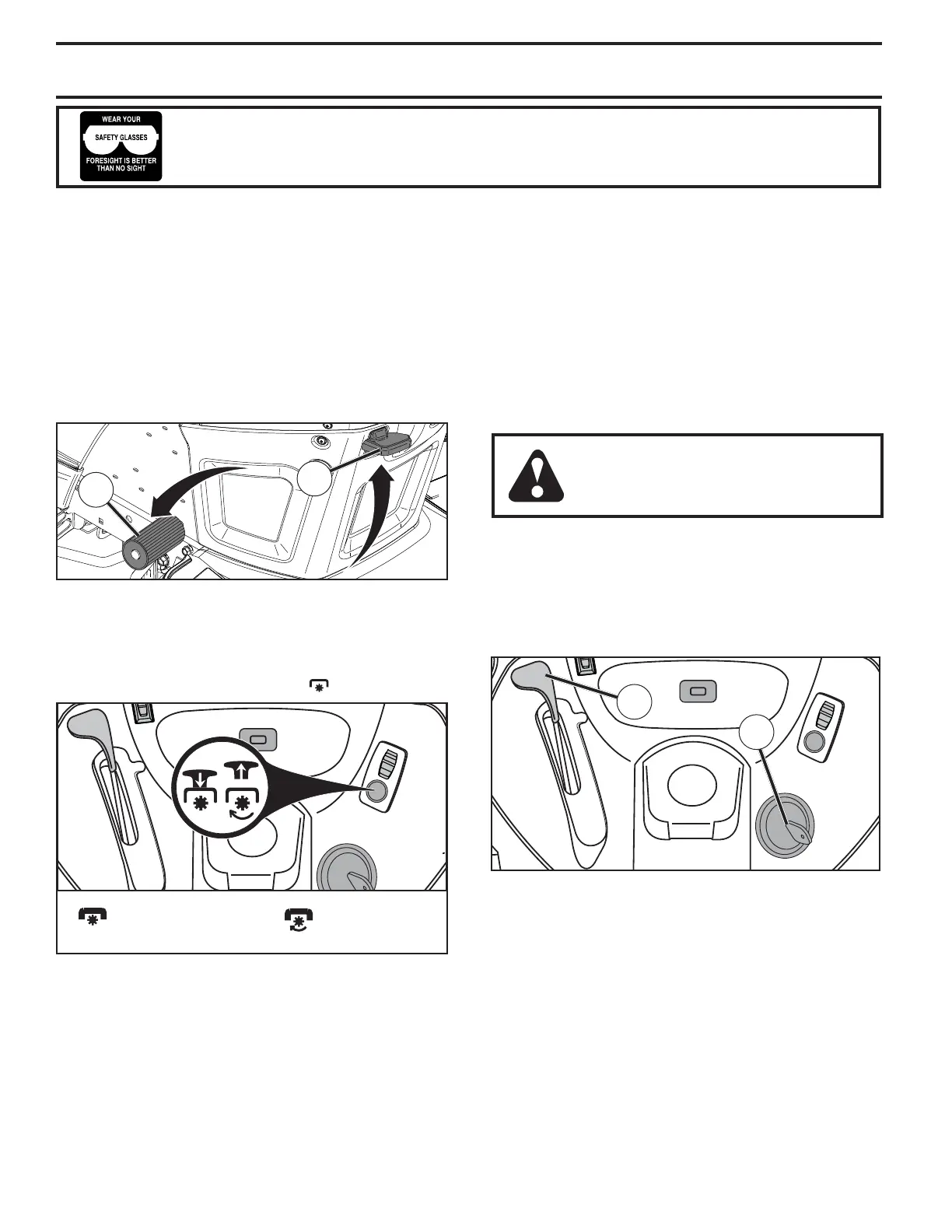 in severe eye dam age. Always wear safety glass es or eye shields while operating your tractor