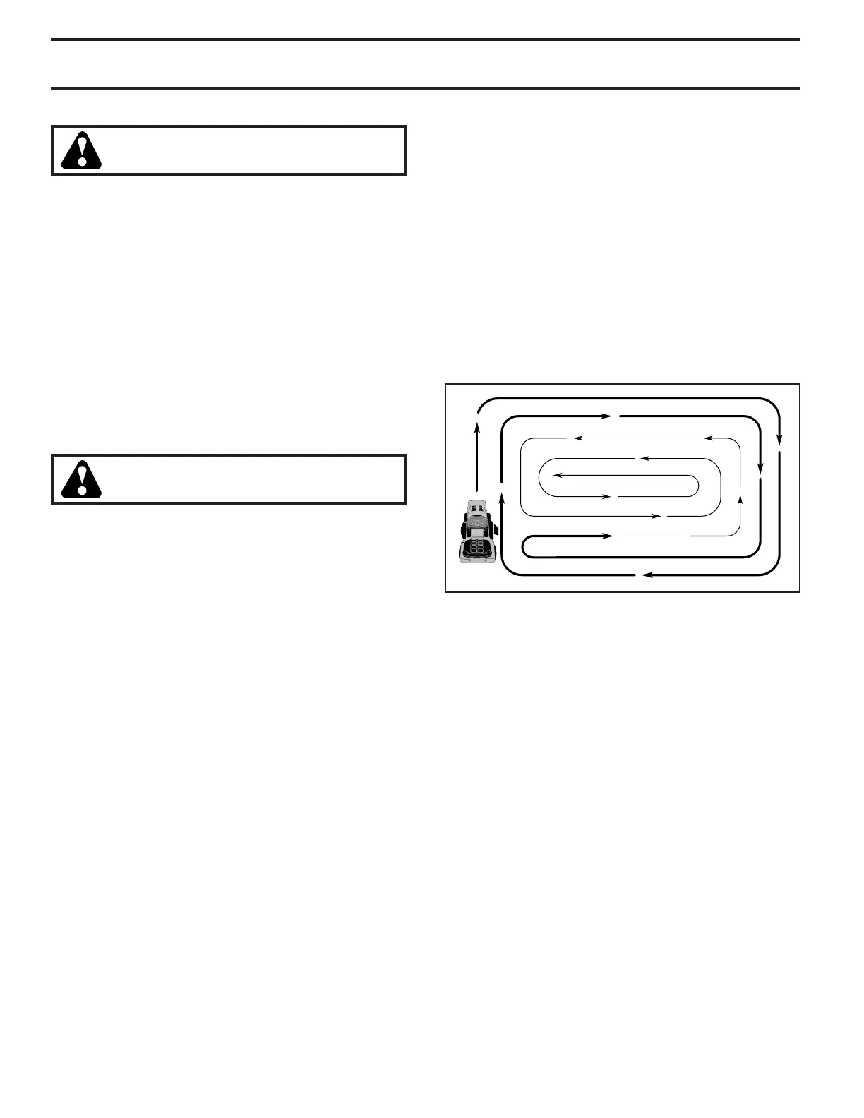 • When mowing large areas, start by turning to the right