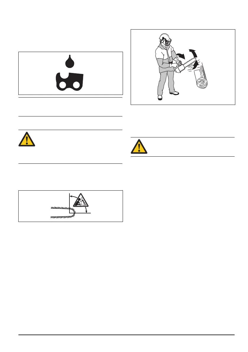 • Remplir le réservoir d’huile pour chaîne avec de