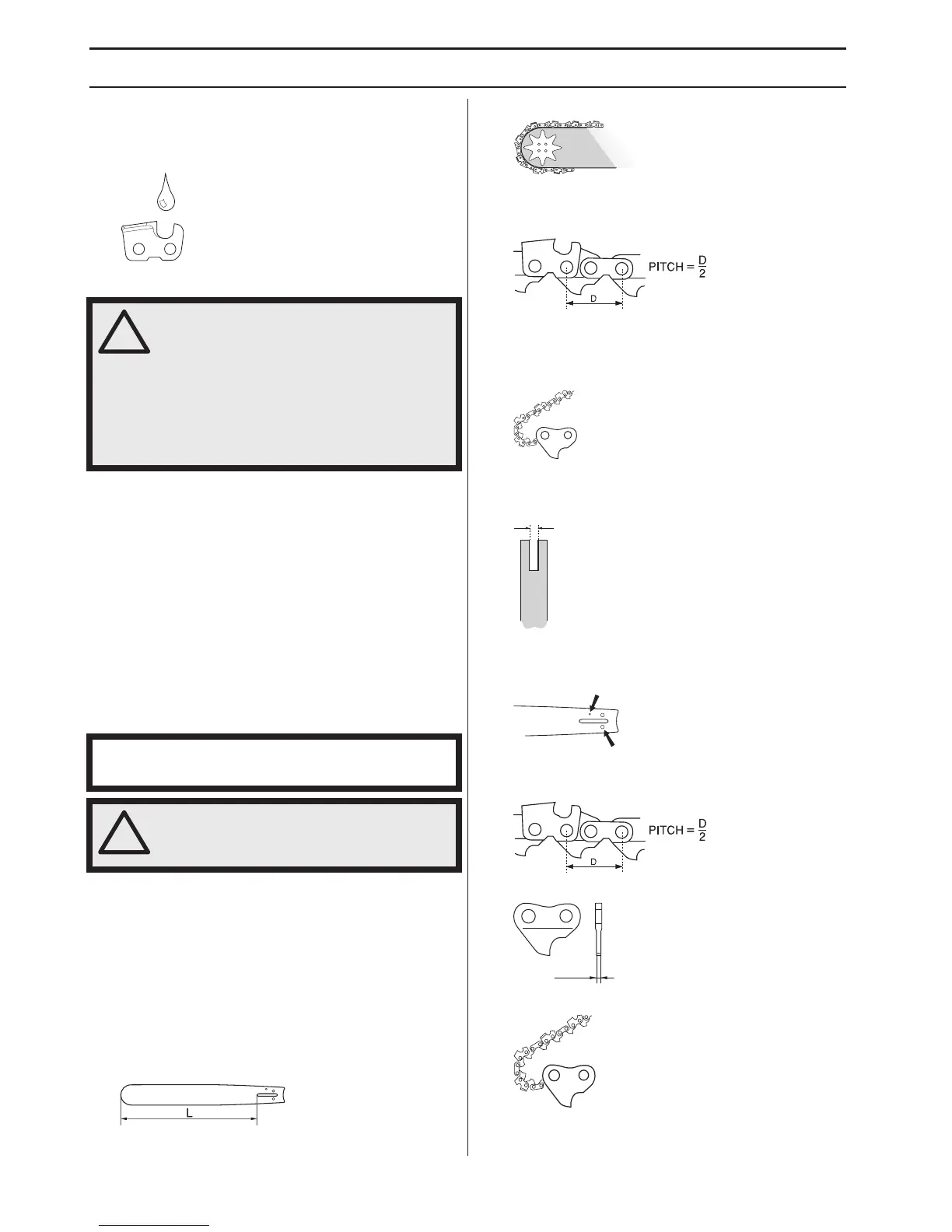 • Jauge du guide-chaîne (mm/pouces). Celle-ci doit