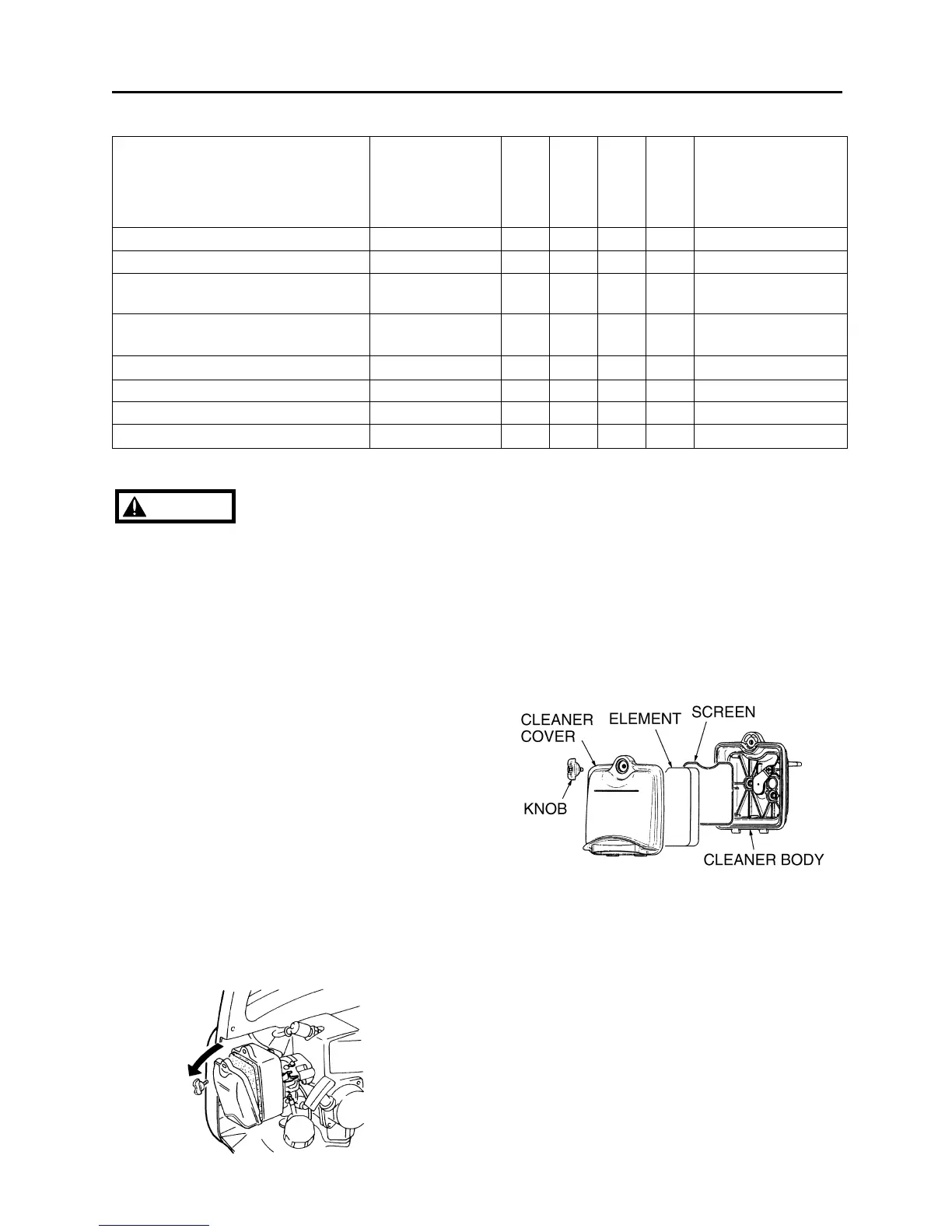 • Check the air cleaner every 25 hours of
