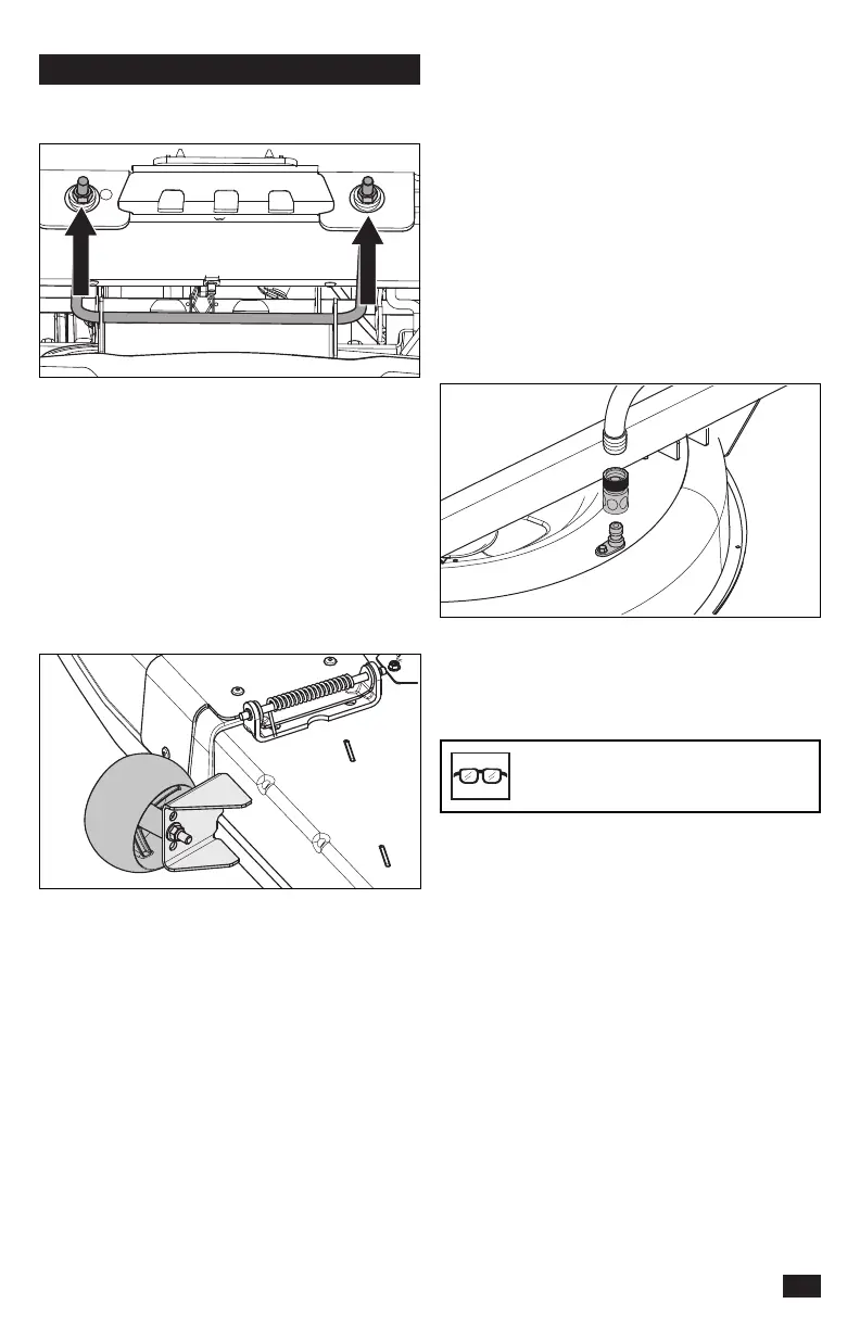 After mowing, snap the hose to the cleanout port