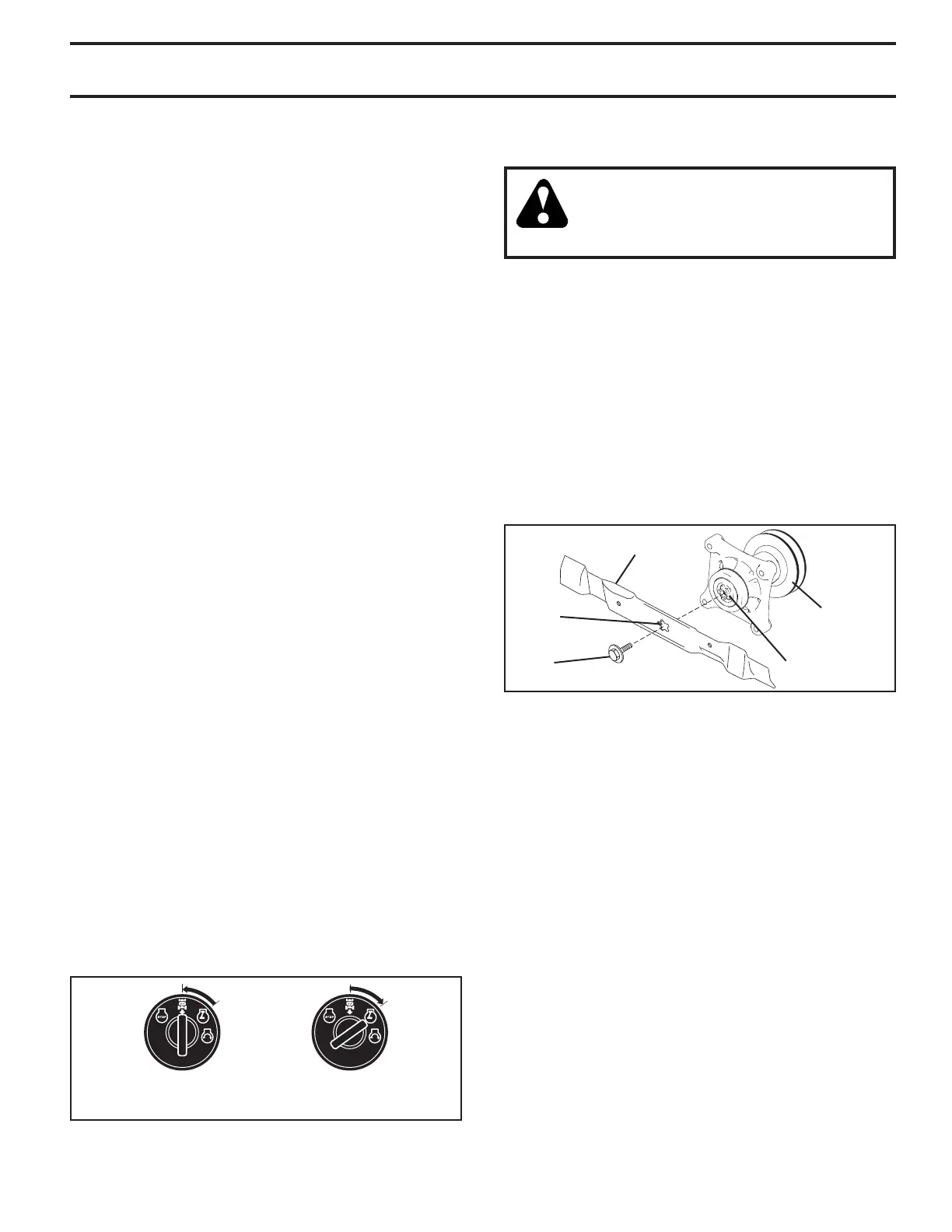 • Install and tighten blade bolt securely (45-55 Ft. Lbs./