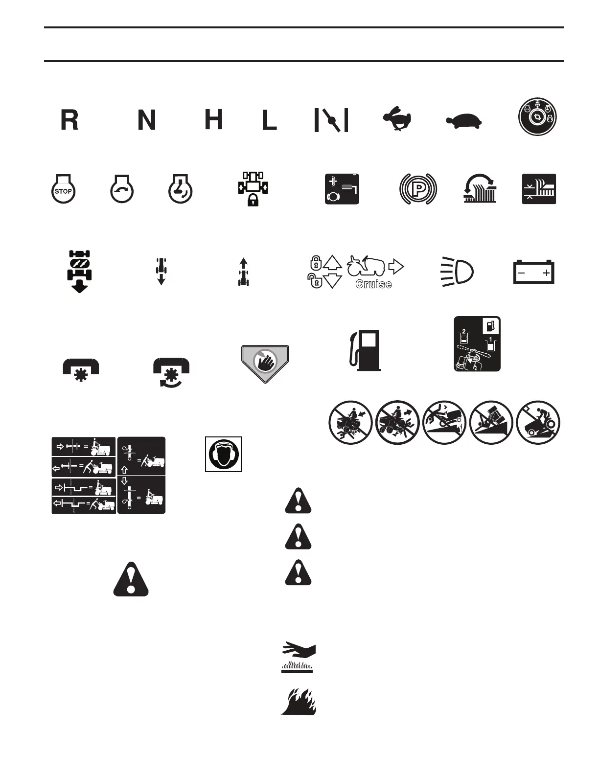 These symbols may appear on your tractor or in literature supplied with the product. Learn and understand their meaning.