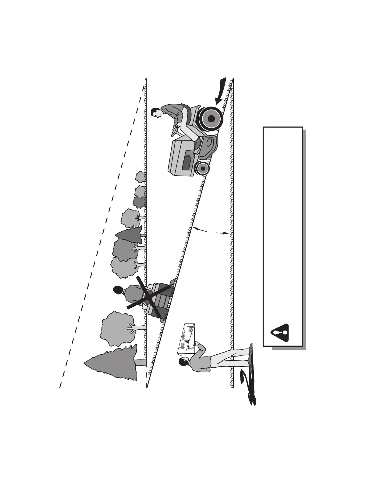 y abajo de las pendientes, nunca transversalmente con respecto a las