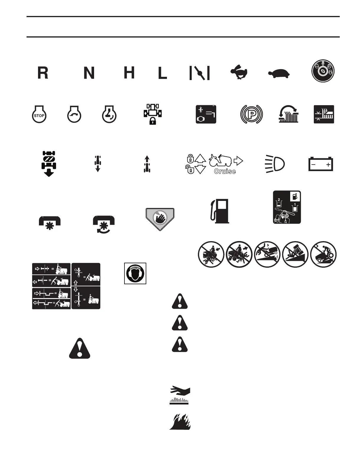 These symbols may appear on your tractor or in literature supplied with the product. Learn and understand their meaning.