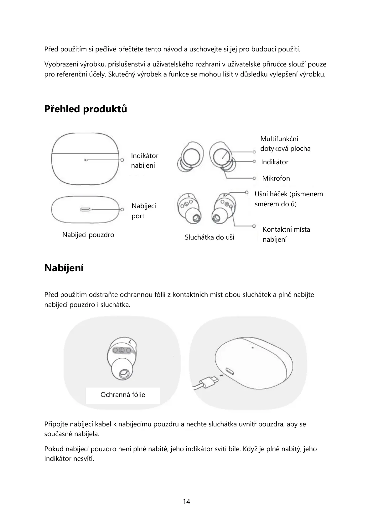 Před použitím odstraňte ochrannou fólii z kontaktních míst obou sluchátek a plně nabijte