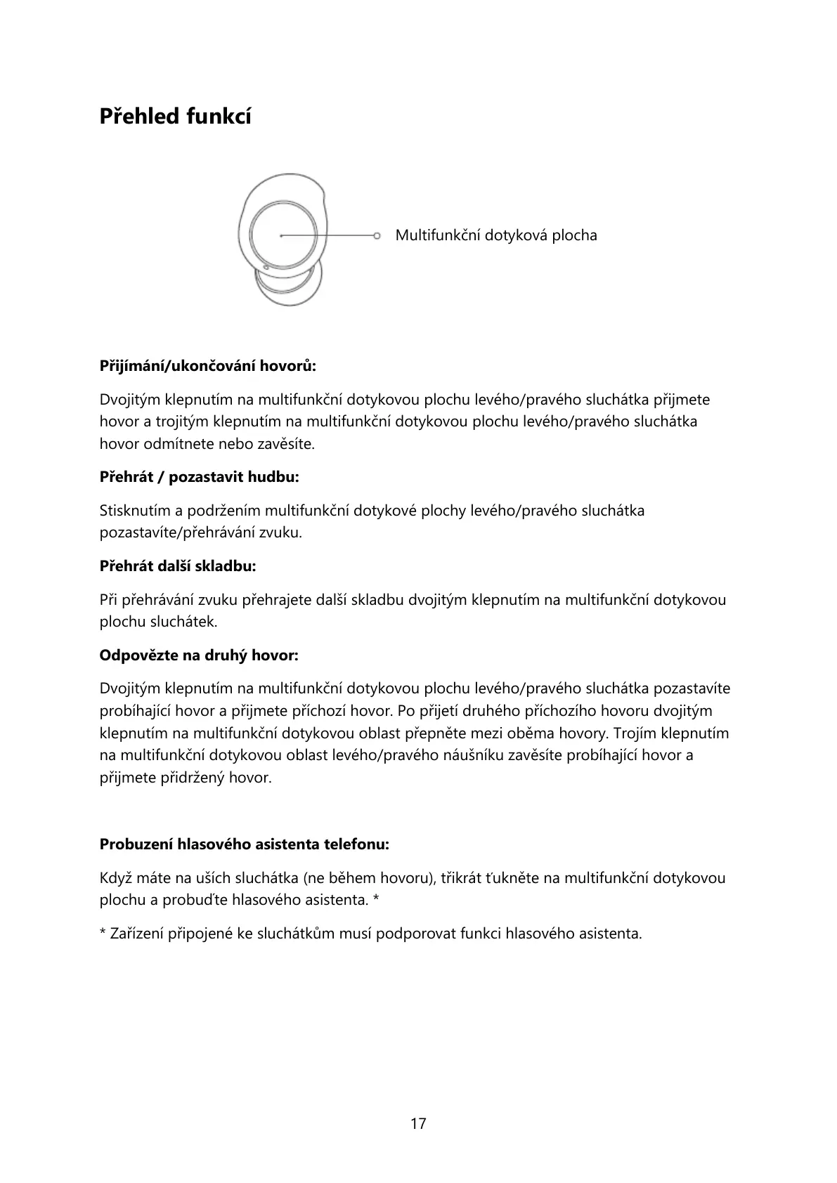 * Zařízení připojené ke sluchátkům musí podporovat funkci hlasového asistenta.