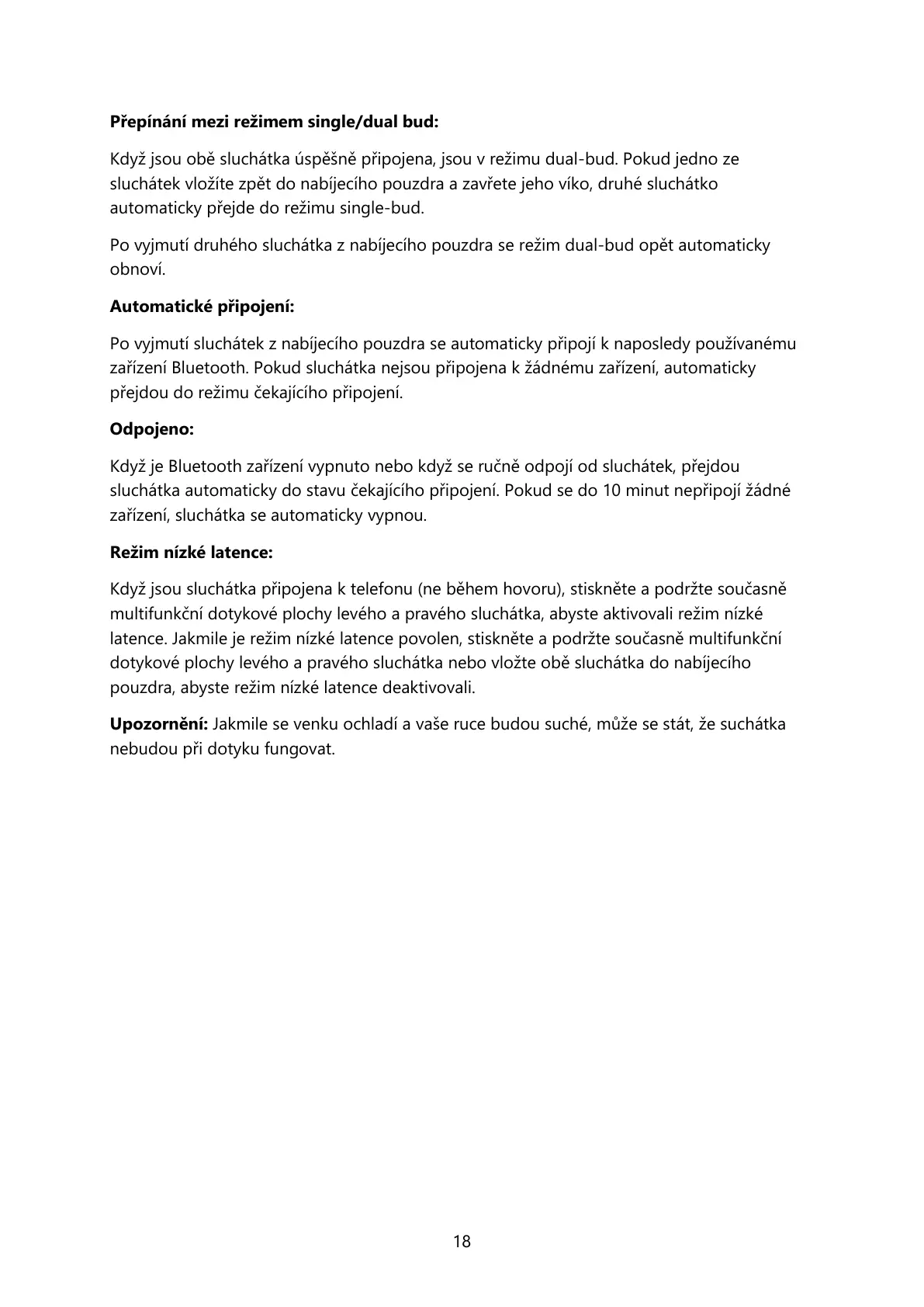 Když jsou obě sluchátka úspěšně připojena, jsou v režimu dual-bud. Pokud jedno ze