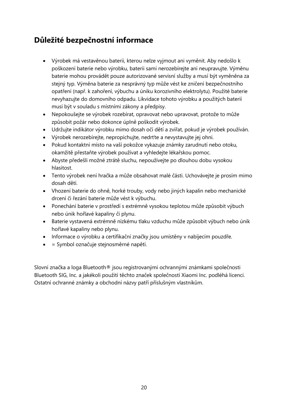 Bluetooth SIG, Inc. a jakékoli použití těchto značek společností Xiaomi Inc. podléhá licenci.