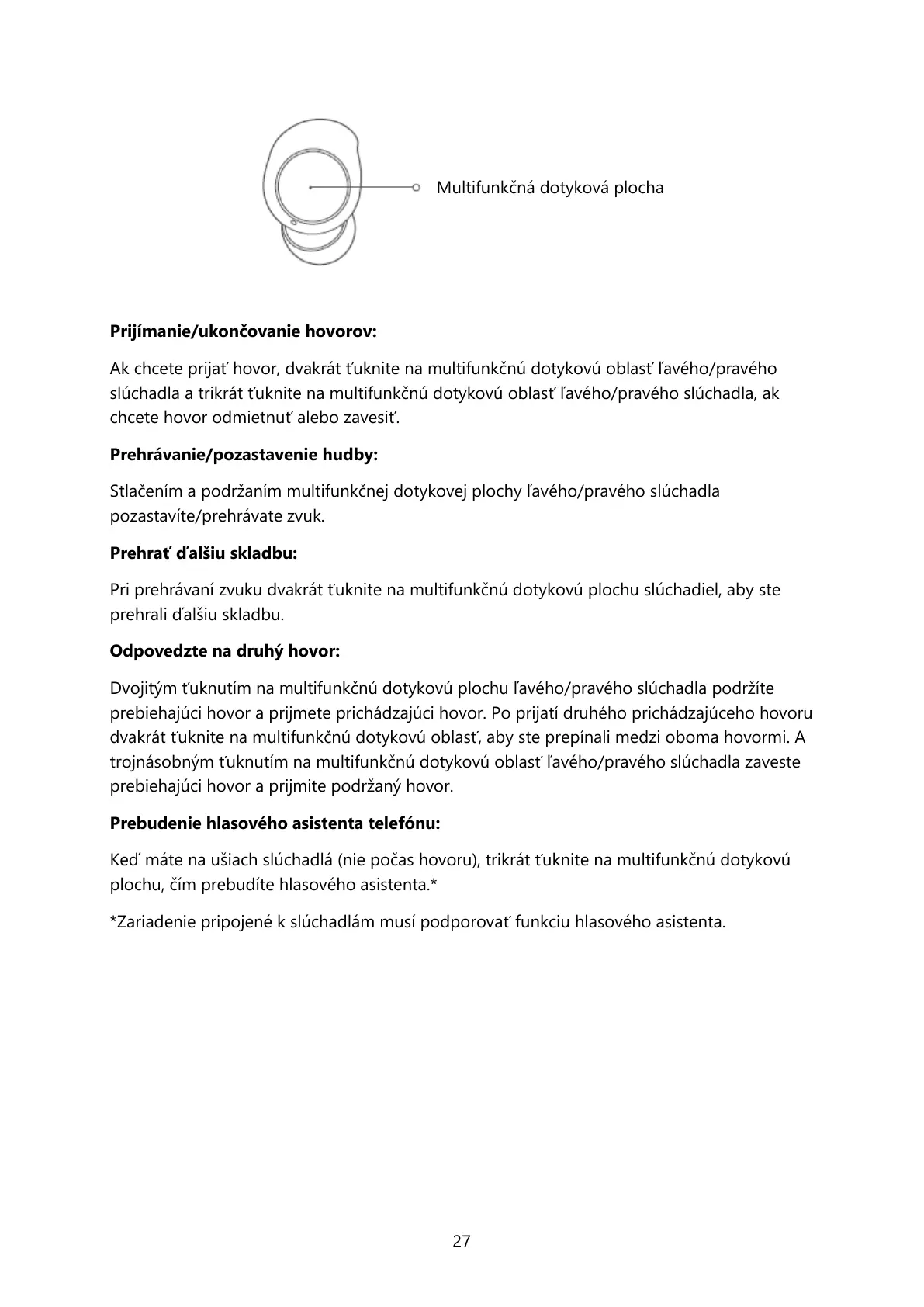 *Zariadenie pripojené k slúchadlám musí podporovať funkciu hlasového asistenta.