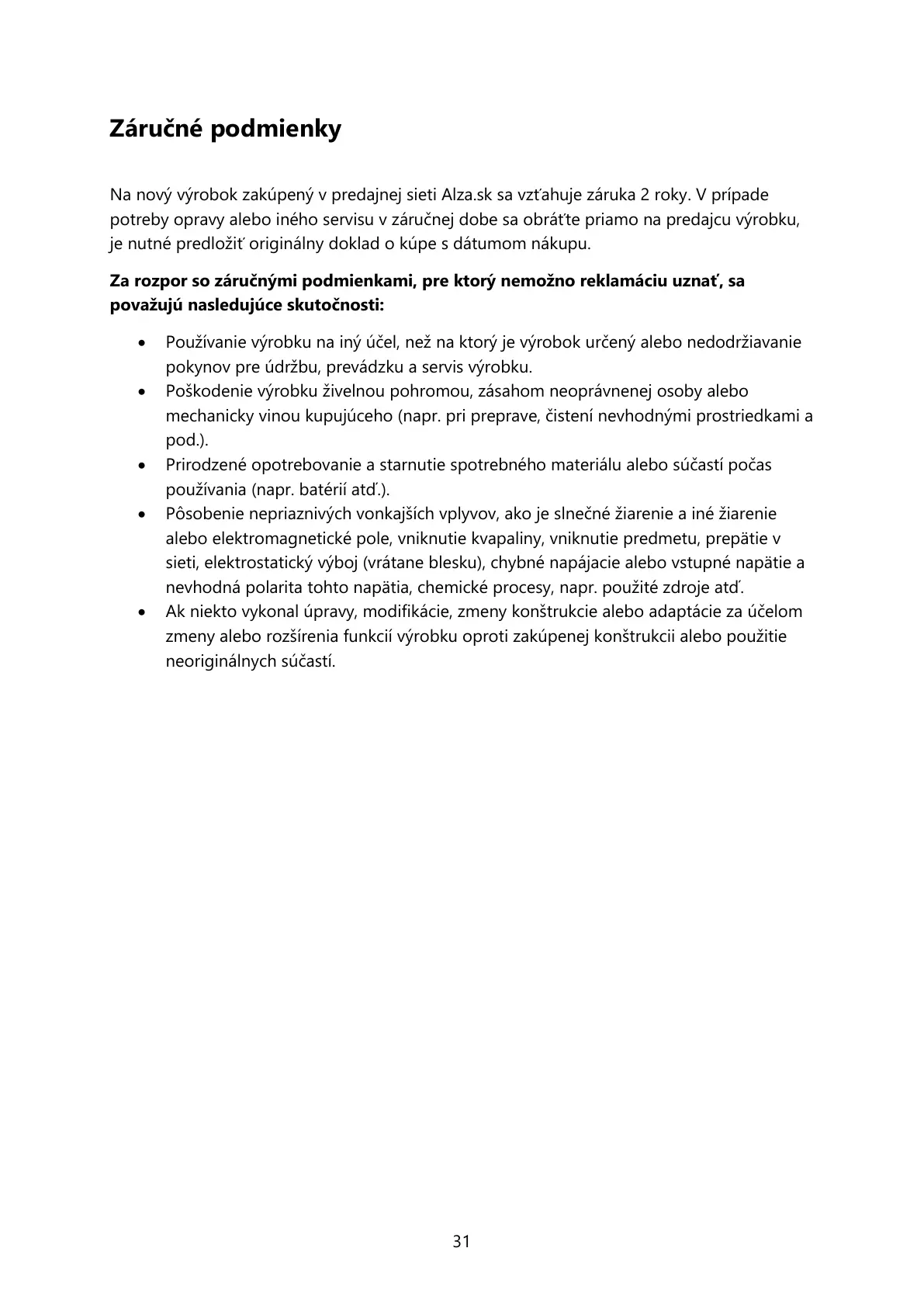 Na nový výrobok zakúpe v predajnej sieti Alza.sk sa vzťahuje záruka 2 roky. V ppade