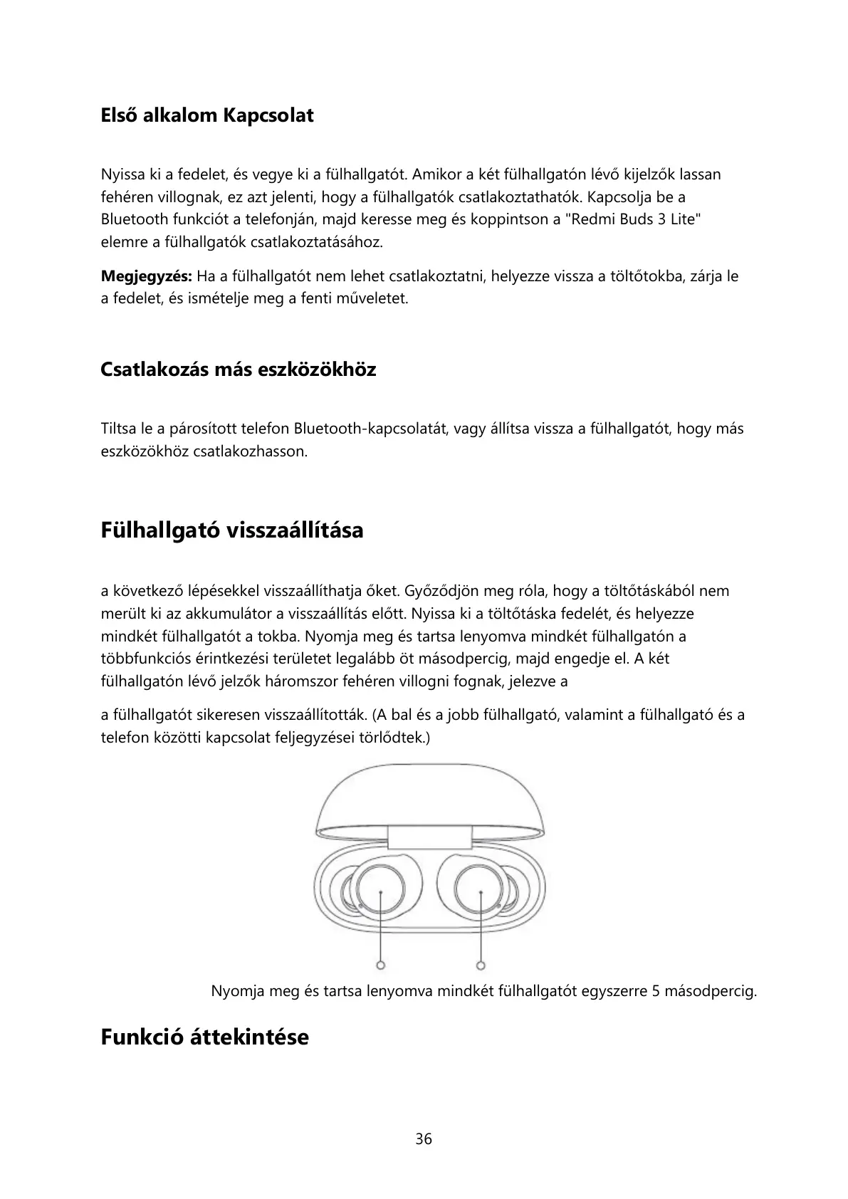 mindkét fülhallgatót a tokba. Nyomja meg és tartsa lenyomva mindkét fülhallgatón a
