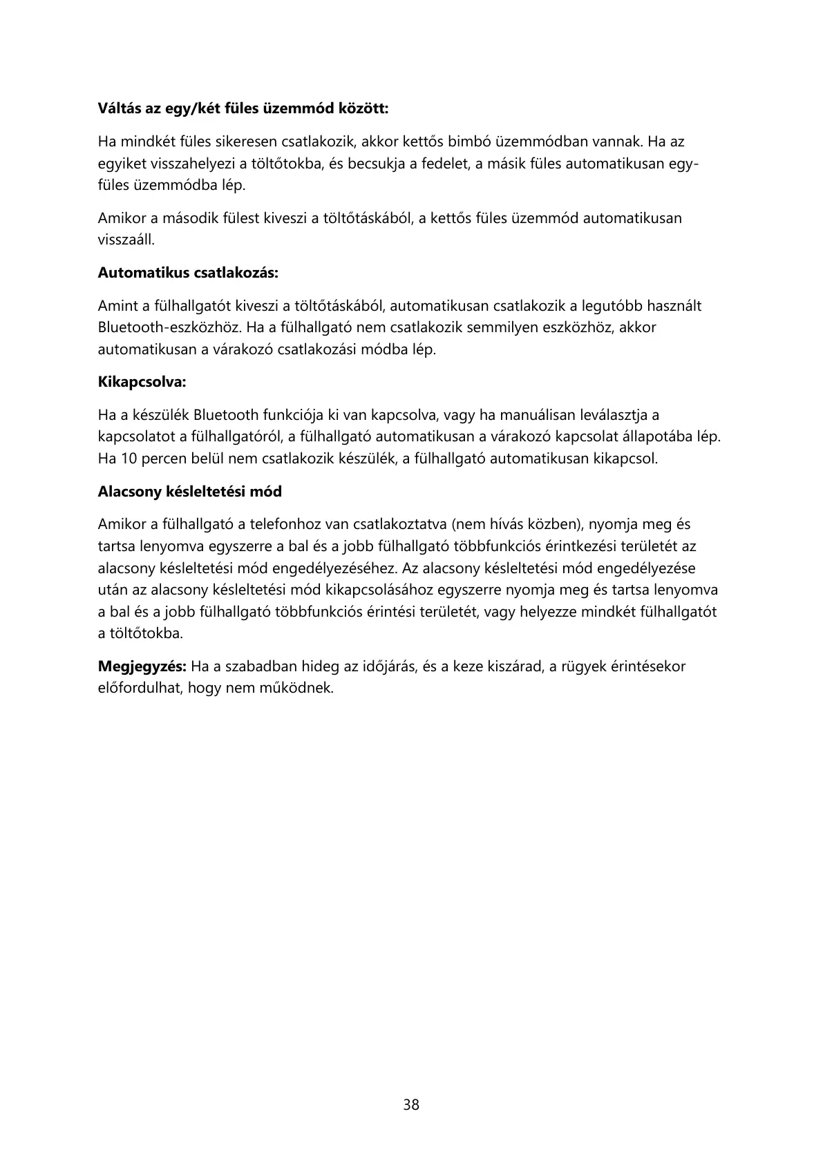 Ha 10 percen belül nem csatlakozik készülék, a fülhallgató automatikusan kikapcsol.