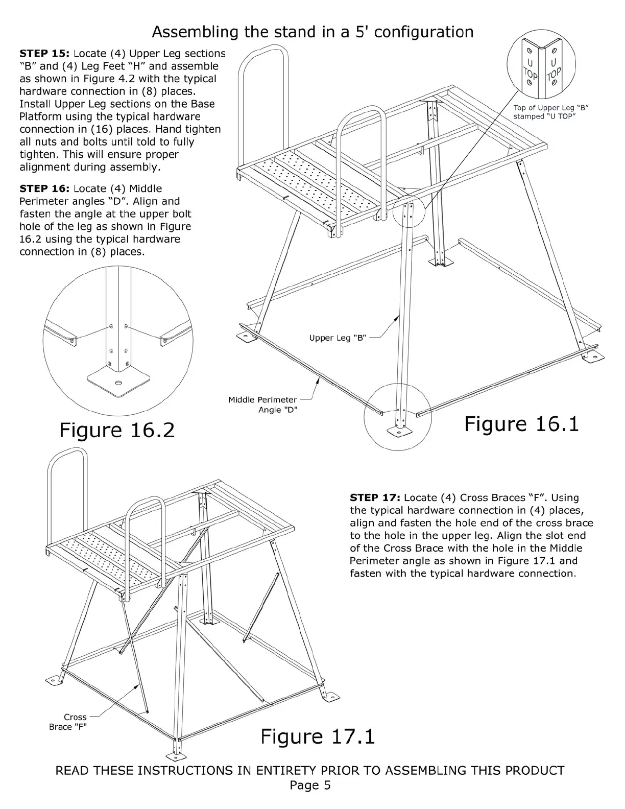 RedNeck Deer - 5 Stand Configuration Assembly; Step 15: Assemble 5 Legs and Platform; Step 16: Attach 5 Middle Perimeter Angles; Step 17: Install 5 Cross Braces