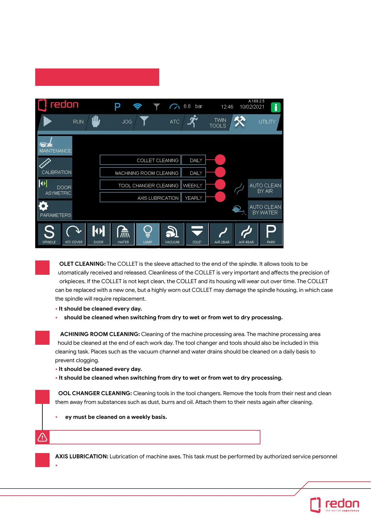 AXIS LUBRICATION: Lubrication of machine axes. This task must be peormed by authorized service personnel.