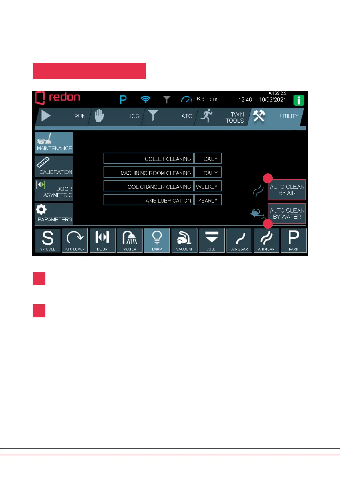 AUTO CLEAN BY AIR: This function enables the machine to clean itself by 40%. While an automatic program moves