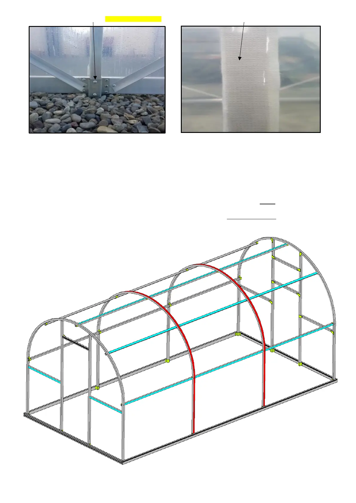 * If you have a 15m or longer tunnel, fit the collar tie high wind braces as shown in the drawing below