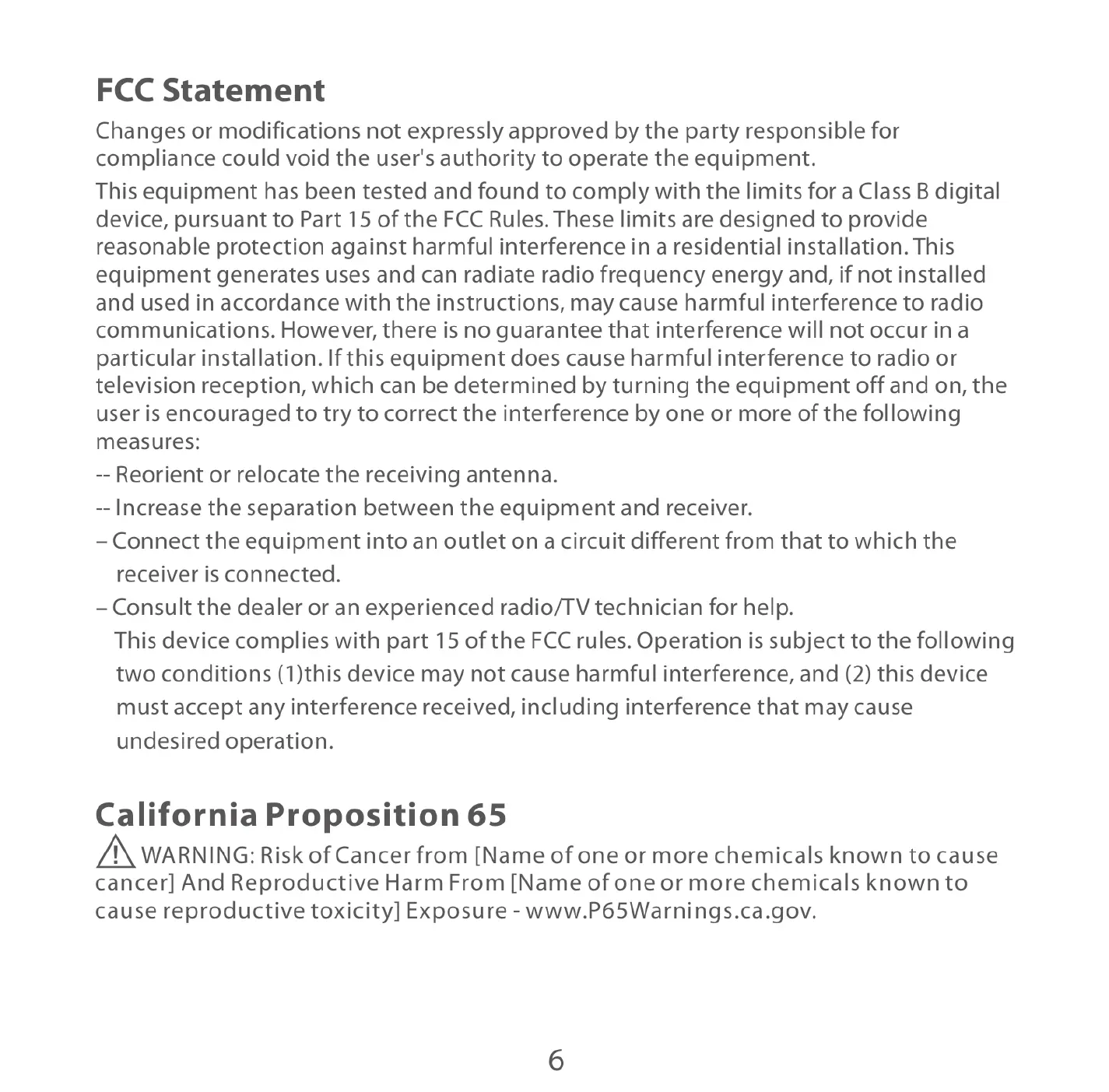 REDRAGON M656 Gainer Wireless - Regulatory Information; FCC Statement; California Proposition 65
