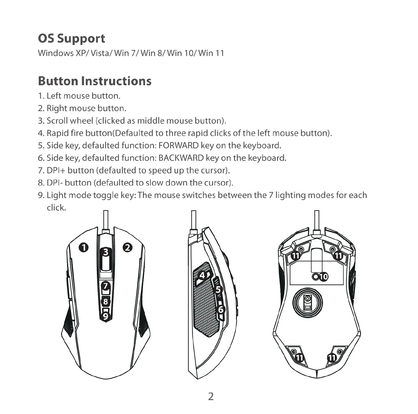 REDRAGON M910-K RANGER BASIC - OS Support and Button Functions; OS Support; Button Instructions