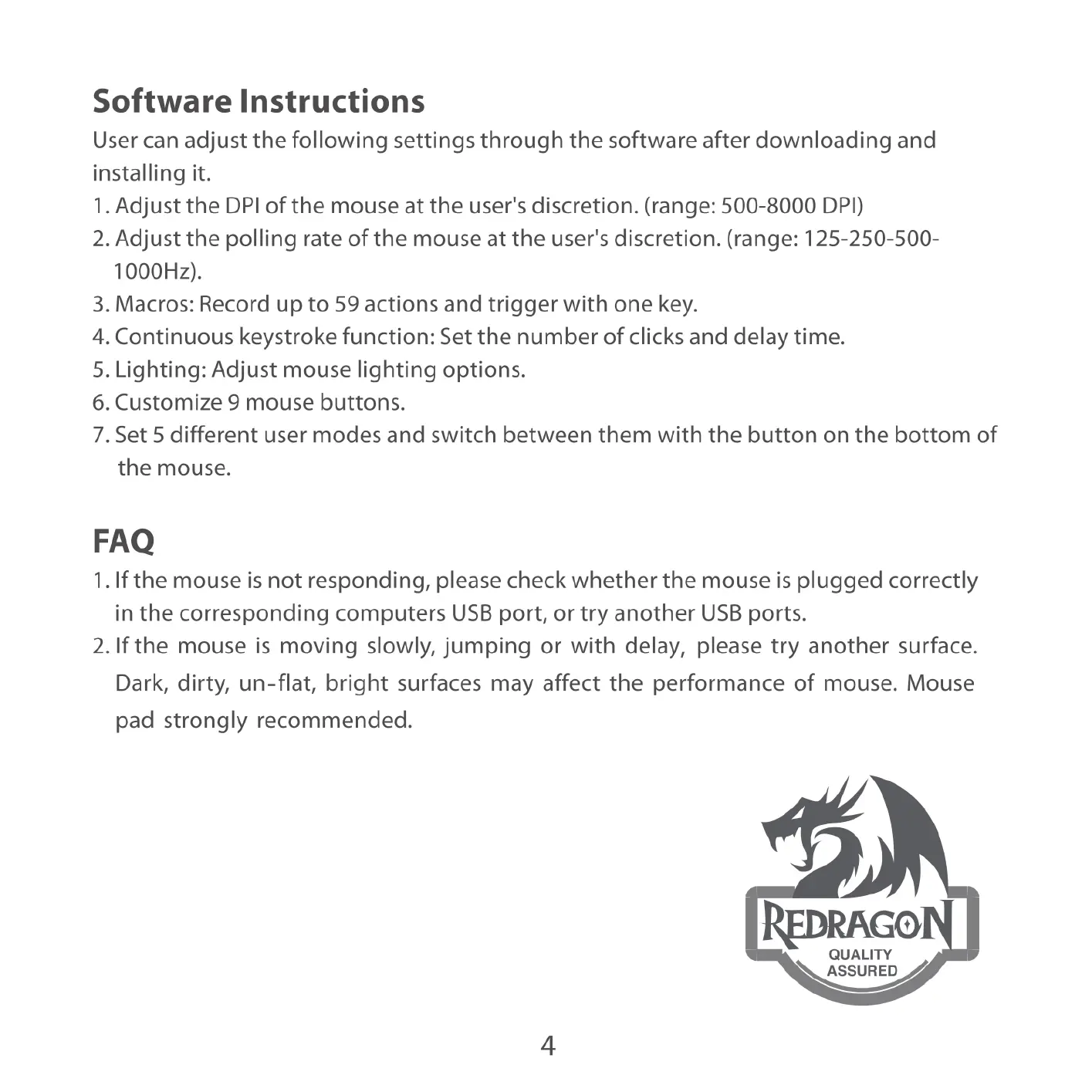 REDRAGON M910-K RANGER BASIC - Software and Troubleshooting; Software Instructions; FAQ