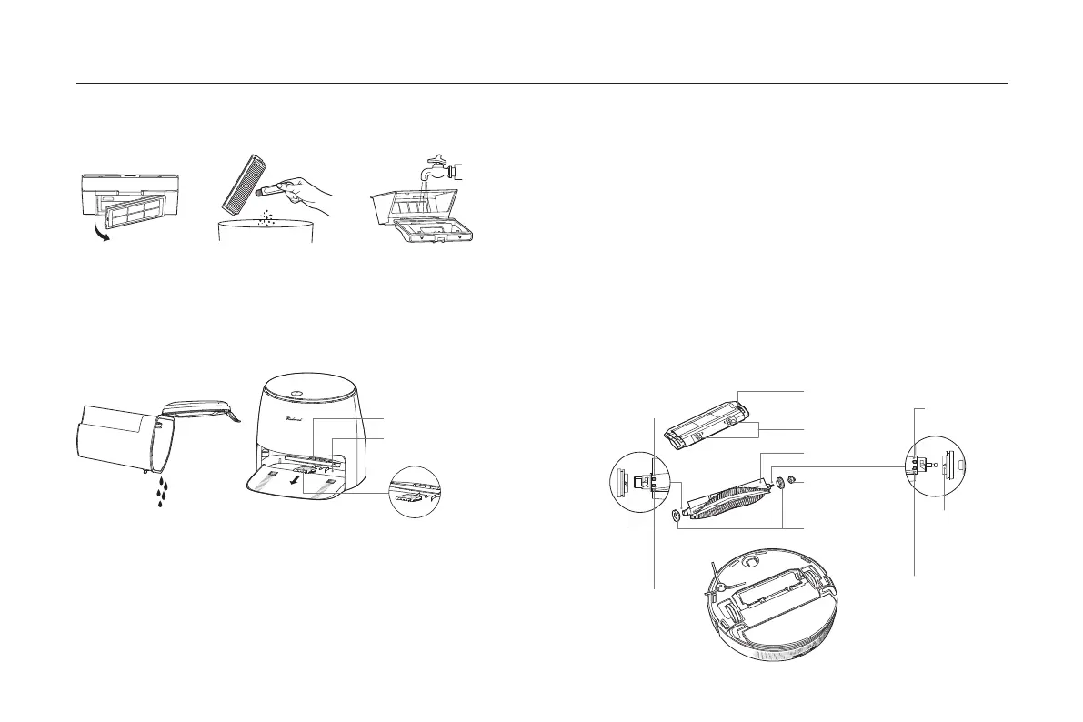 • Tras fregar el piso, retire y limpie el tanque de agua sucia de inmediato, limpiando