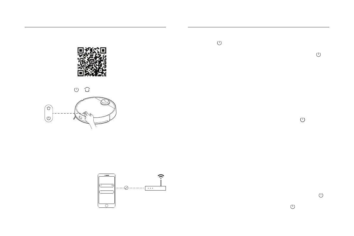 Appuyez sur " " de l'aspirateur pendant 3s, le voyant lumineux