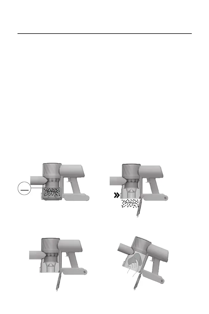 1. Dumping: Press the release button on the bottom cover of the dust tank to empty the dust.