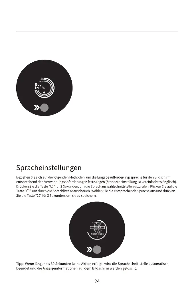 Drücken Sie 3 Sekunden lang, um die Menüschnittstelle aufzurufen, klicken Sie auf die Spracheinstellung