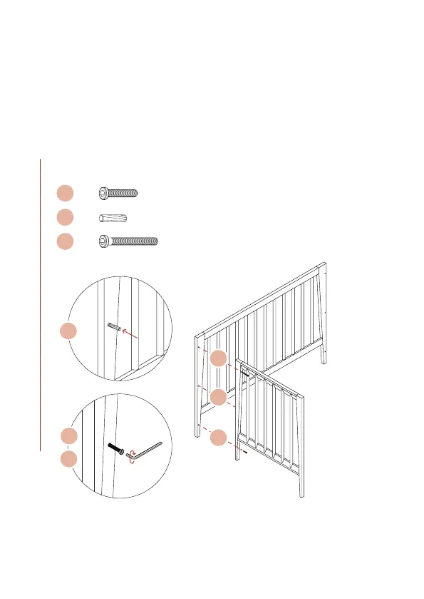 1 Assemble the panels together using the dowel (B) and
