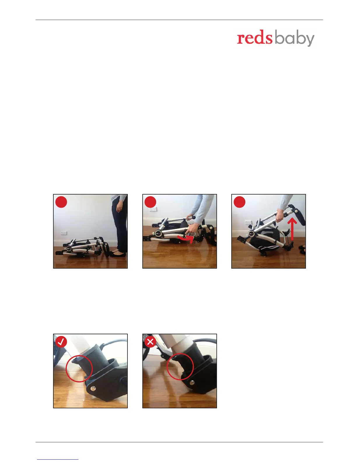 Align the brake component with the two rear ends of the pram. Click