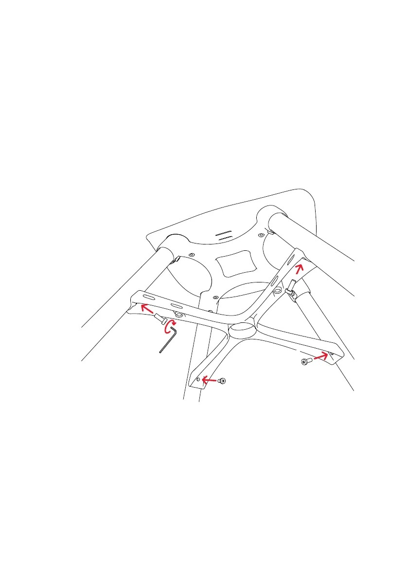 screws (S2) and the Allen Key (H) to fix the cross bar (C)