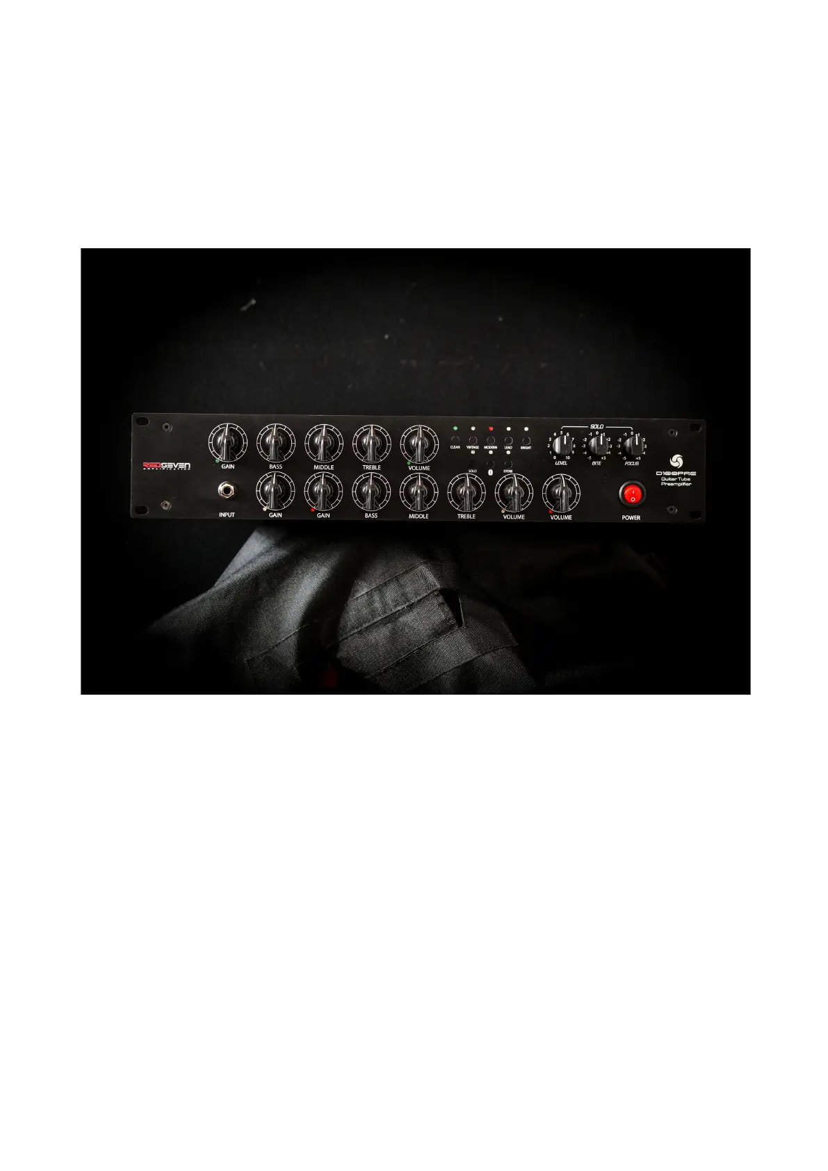 (clean channel): Gain, Bass, Middle, Treble, Volume controls.