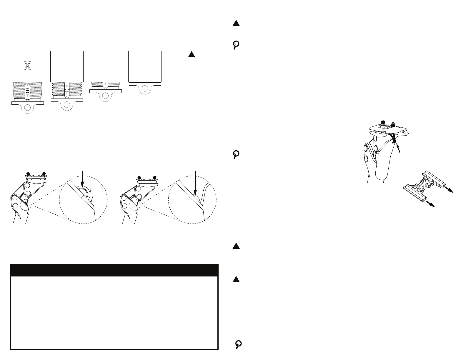 WARNING! DO NOT OVER TIGHTEN SADDLE CLAMP BOLTS! OVERTIGHTENING MAY LEAD TO