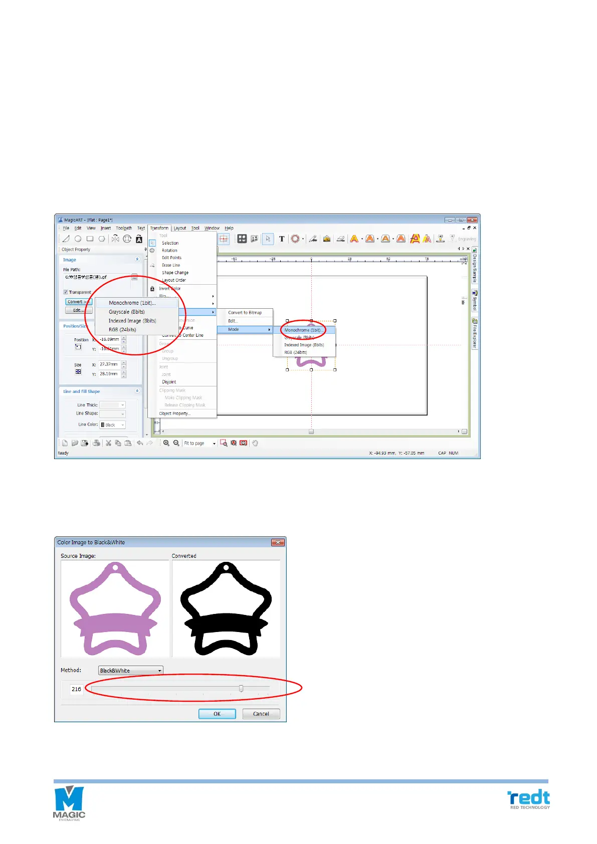 “Monochrome (1bit)…” or “Convert” button in the image object registration information window to select